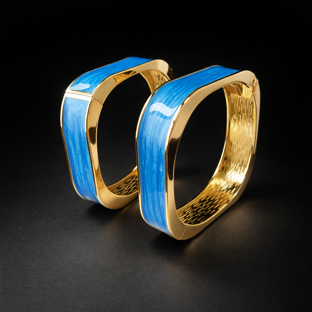 KOOBERAZ Premium Blue Enamel Golden Plated Bracelet ek elegant aur modern jewellery piece hai jo aapke har look ko classy bana deta hai. Is bracelet ko premium stainless steel se design kiya gaya hai jo long-lasting, anti-tarnish aur rust-free hai, isliye iska shine kaafi time tak bana rehta hai.