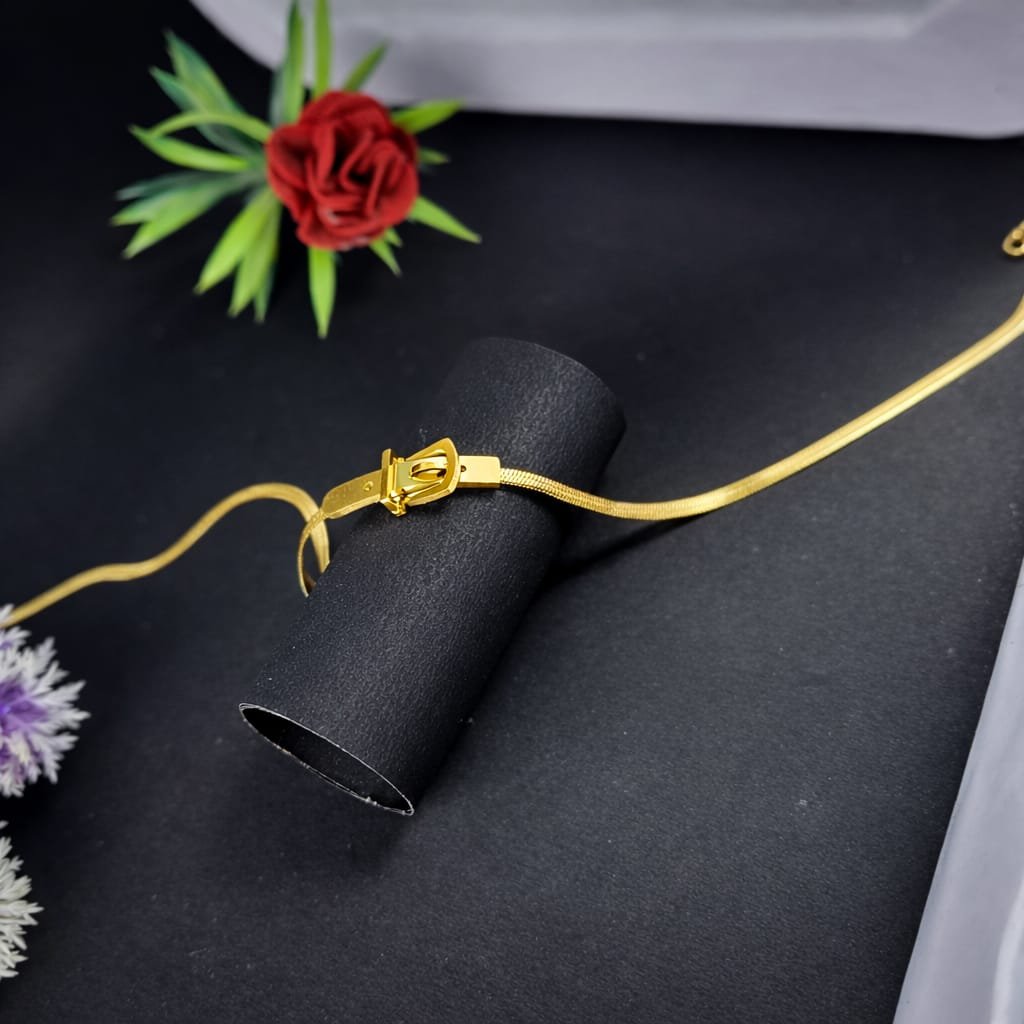 High-quality stainless steel material se bana ye bracelet anti-tarnish, rust-free aur long-lasting hai. Premium golden plating bracelet ko extra shine aur classy finish deti hai jo time ke saath dull nahi hoti. Iska strong buckle lock secure fitting ensure karta hai aur lightweight design ki wajah se ye poore din comfortable rehta hai.