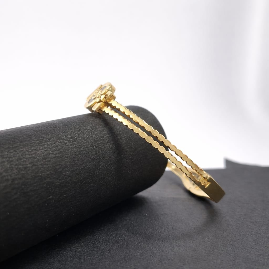 The bracelet features a minimal yet luxurious circular design with a smooth gold-tone polish that complements both ethnic and western outfits effortlessly. Its lightweight structure ensures all-day comfort, while the sturdy stainless steel base offers durability and long-lasting wear.